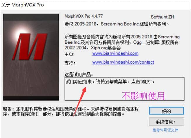 2、关于界面写了试用期限已过,没影响的,因为软件试用的限制已经去除了,过期了也能正常使用
