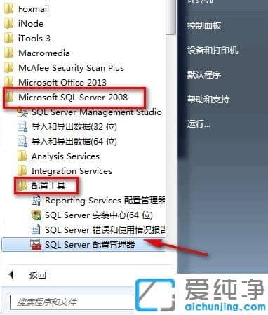 第二步:我们依次打开win7系统左下角【开始】-【所有程序】-【SQL Server 2008】-【配置工具】;