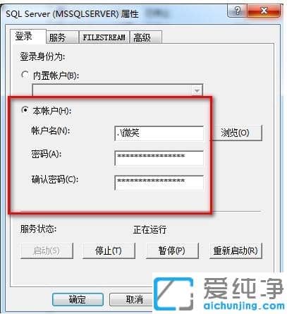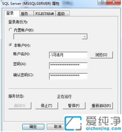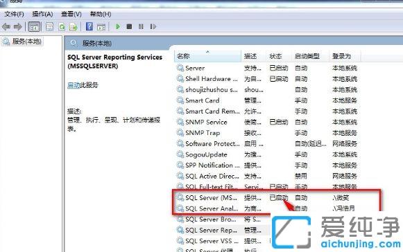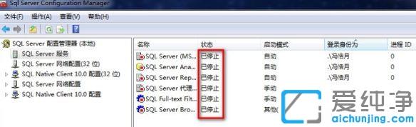 第一步:我们点击【SQL Servet服务】,在右侧以前的登录身份,显示【已停止】。