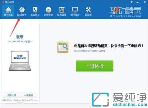 第二步:在xp纯净版电脑桌面,单击打开【驱动精灵】,点击最上面一栏的【驱动程序】。