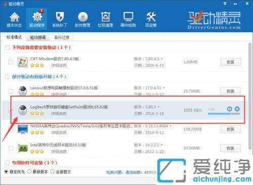 第三步:在驱动程序界面下,鼠标下滑看到罗技的鼠标键盘驱动,点击右侧的【安装】,等待电脑下载完成。
