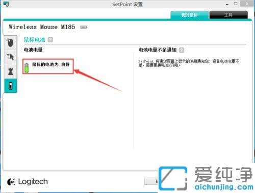 无线鼠标没有了那根线的束缚,使用起来更加灵活方便。我们都知道无线鼠标是装电池的,如果外出刚好鼠标没电了,身边又没有备用电池的话,就可能会影响到工作。最近xp纯净版用户咨询小编,怎么查看他的罗技无线鼠标电量呢?接下来爱纯净和大家一起学习下吧!