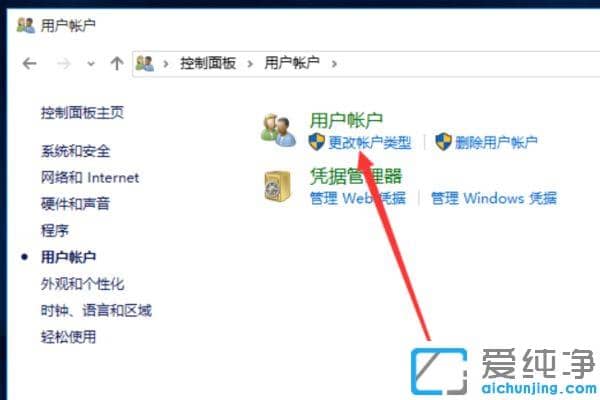第三步:在用户账户窗口下,点击打开右侧的【更改帐户类型】。