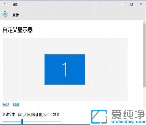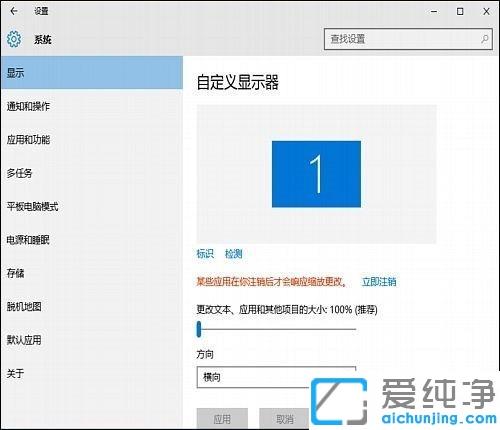 第三步:在自定义显示器下,如下图鼠标点击滑块向左移动【调节到100%】,【应用】。