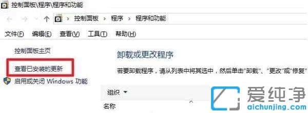 第二步:win10纯净版64位电脑调出【程序和功能】界面后,如下图所示点击左侧的【查看已安装的更新】。