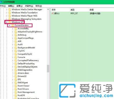 第五步:在【Microsoft】目录下再次点击展开【Windows NT】--【CurrentVersion】。