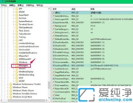 第六步:鼠标单击【CurrentVersion】目录下的【Winlogon】文件夹。