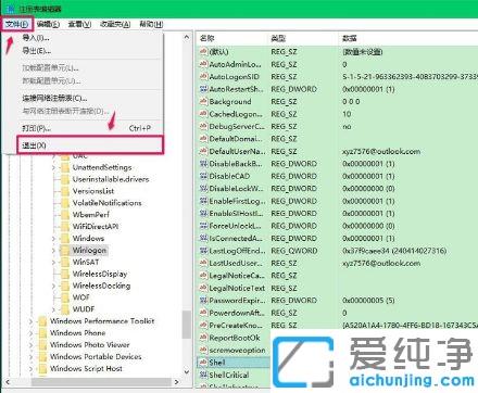 第八步:接着点击注册表编辑器左上角的【文件】,菜单中选择【退出】,退出注册表编辑器。