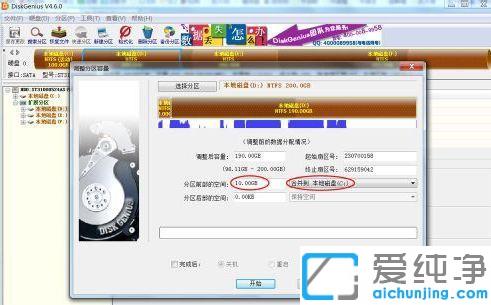 第三步:在win10系统弹出的窗口中,设置好要增加的容量大小,点击【开始】即可。