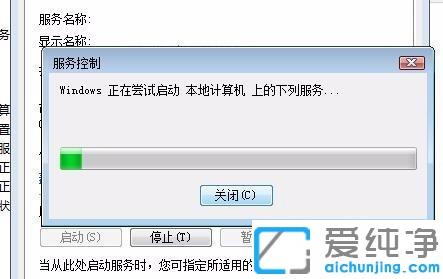 第五步:这时就会弹出【windows正在尝试启动本地计算机上的下列服务】进度条,我们耐心等待进度条完成即可。