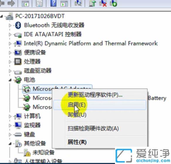 第三步:鼠标右击被禁用的电池,菜单栏选择【启用】。