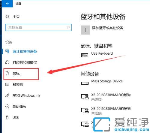 第三步:接下来我们就进入设备窗口,点击左侧的【鼠标】选项。