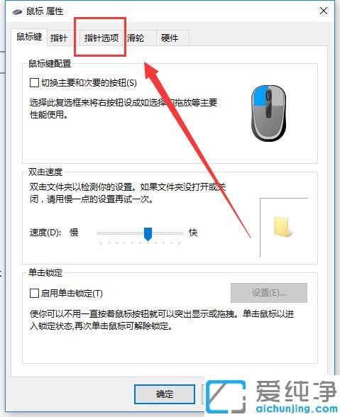 第五步:出现【鼠标属性】窗口,点击切换到第三个【指针选项】。