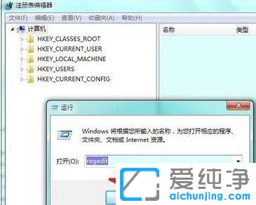 第一步:在【开始】→【运行】中输入: regedit 点击确定的打开注册表;
