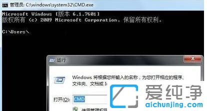 第一步:按下“Win+R”组合键打开运行,输入“CMD”点击确定打开命令提示符;