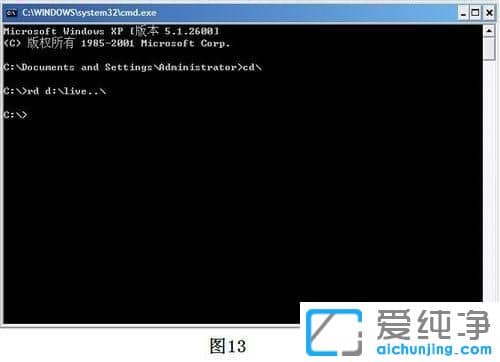 1第三步:对话框光标处输入:rd d:/live../,如图13。按一下回车键后,便可瞬间将其删掉。