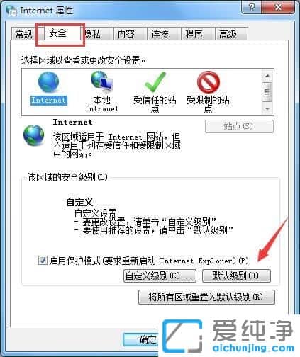 µÚËIJ½£ºÇл»³£¹æÃæ°åÖÁ¡¾°²È«¡¿Ñ¡Ï£¬²¢µã»÷µ×²¿¡¾Ä¬Èϼ¶±ð¡¿°´Å¥£»
