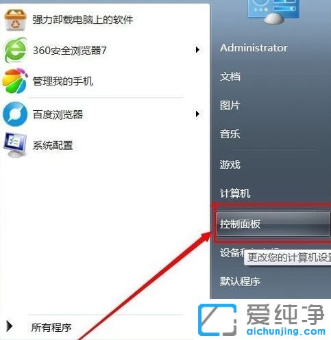 第四步:或者我们还可以点击左下角的开始菜单,然后在里面我们点击控制面板。