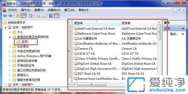 第五步:然后点击确定退出,在界面中点击证书-当前用户→受信任的根证书颁发机构→证书,然后在右边找到浏览器提示的证书,然后将其删除;