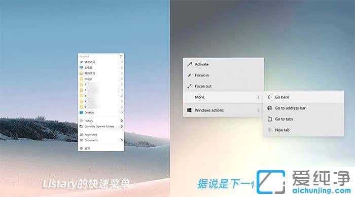 快速菜单并非是现版Win10的设计,甚至在同类操作系统中也很鲜见。但如果你安装过Listary这样的第三方效率搜索器,就会发现,两者真的是神一样相似。从截图中来看,这个全新菜单可以在桌面上激活,能够访问操作中心(Actions)、地址栏、专注模式等区域。目前尚不清楚这些区域是否支持定制,是否能在其他地方调出。但如果微软真的是在对标Listary,那么结果就相当令人期待了。