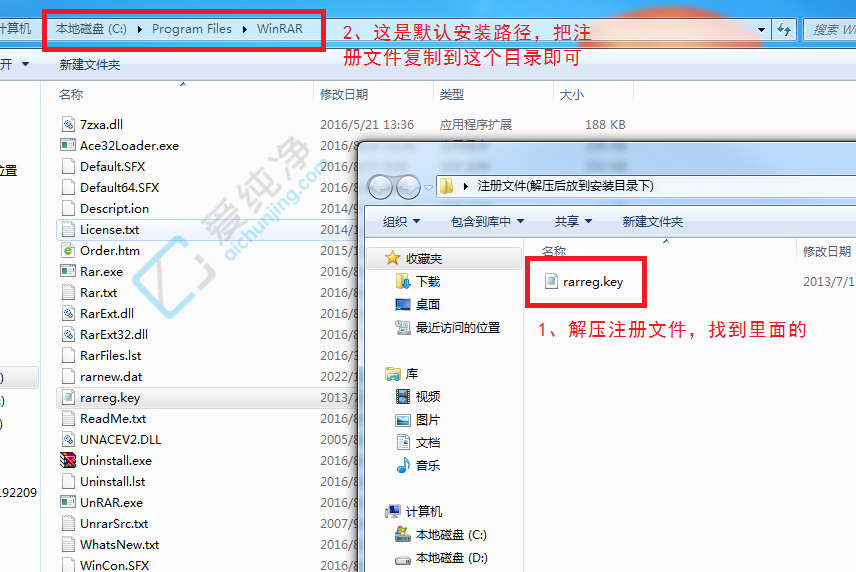 2¡¢ÏÂÔØºÃ×¢²áÎļþºó½âѹ³öÀ´£¬È»ºó°ÑËü¸´ÖƵ½WinRAR°²×°Ä¿Â¼Ï£¬Ä¬ÈÏÊǰ²×°ÔÚ£ºC:\Program Files\WinRAR\ Ŀ¼ÀïÃæ¡£