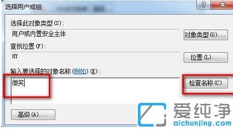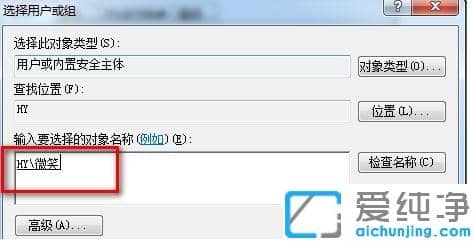 第五步:点击更改账户名边上 的【浏览】,输入你计算机账户名称: