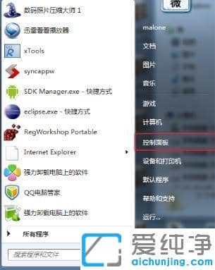 第一步:首先我们点击win7纯净版64位桌面左下角的【开始】--【控制面板】。