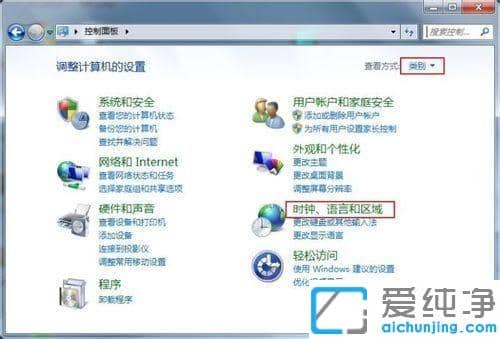 第二步:随后弹出【调整计算机的设置】窗口,将右上角的【查看方式】改为【类别】。接着鼠标单击【时钟、语言和区域】