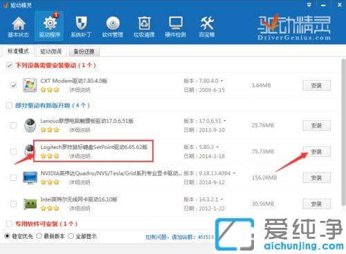 第三步:在驱动程序界面下,鼠标下滑看到罗技的鼠标键盘驱动,点击右侧的【安装】,等待电脑下载完成。