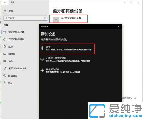 第三步:在【蓝牙和其他设备】窗口下,接着点击最上面的【添加蓝牙或者其他设备】-【蓝牙】添加。