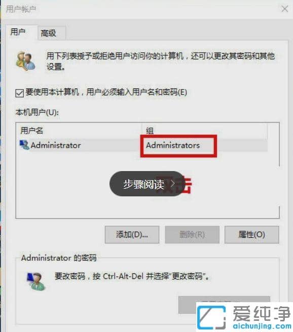 第五步:这时打开【用户账户】界面,我们按下图所示鼠标双击【Administrator】。