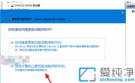 第三步:不要选择自动搜索新的驱动,选择【浏览计算机上的驱动程序】。我们需要到官方将蓝牙驱动下载到电脑并解压,并记住路径。