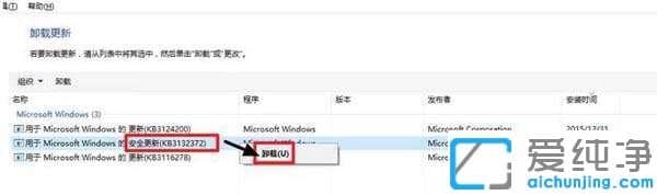 第三步:鼠标下拉找到并右击【补丁KB3132372】这行,菜单栏中选择【卸载】。