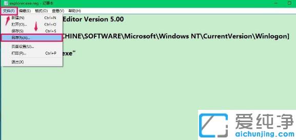 第十步:点击记事本左上角的【文件】,在下拉菜单中点击【另存为】。