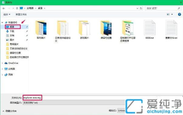 1、另存为窗口时,我们选择保存到【桌面】,文件名(N)栏中输入【explorer.exe.reg】,然后【保存】。