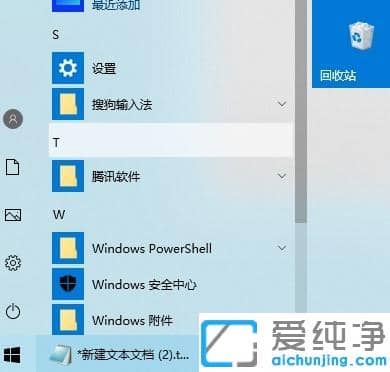 第二步:接着点击切换回平板模式,点击左下角的WIN图标,这时在页面的右上方已经出现了回收站。