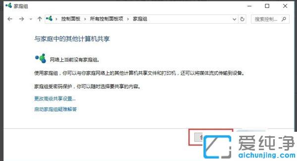 第三步:现在我们看到的就是【家庭组】窗口了,鼠标点击最下方的【创建家庭组】。
