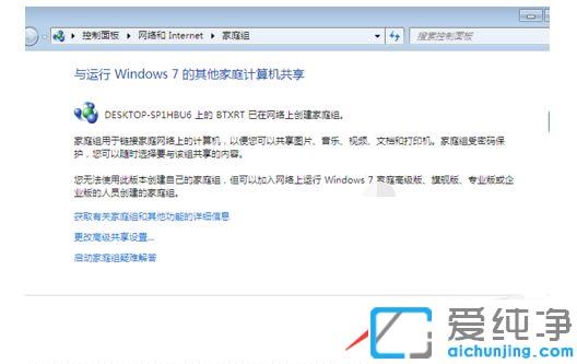 第六步:点击Win7纯净版左下角【开始】,选择【控制面板】并进入。接着依次点击【网络和Internet】-【家庭组】进入到如下图界面。等系统自动检测出局域网内电脑创建的【家庭组】,我们点击【立即加入】。