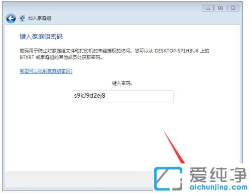 第八步:这时就会弹出输入密码的窗口,也就是之前win10系统创立家庭组时提示我们记住的密码,点击【下一步】。