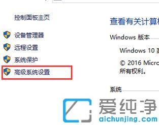 第二步:接着win10纯净版电脑弹出【属性】窗口,点击左侧的【高级设置】。
