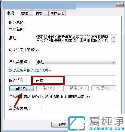 第四步:双击后弹出一个新的窗口,我们点击上方【常规】选项,有服务状态下点击【启动】。