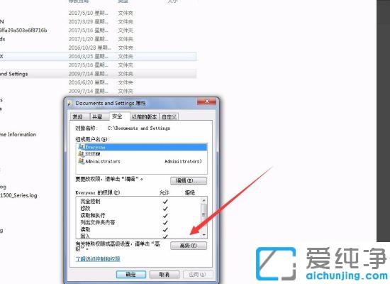 µÚËIJ½£ºÊó±êÑ¡ÖÐDocuments and SettingsϵͳÎļþ¼Ð£¬ÓÒ¼üÑ¡Ôñ¡¾ÊôÐÔ¡¿¡£ÔÚÊôÐÔ´°¿Úϵã»÷µ½¡¾°²È«¡¿Ñ¡Ïµã»÷¡¾¸ß¼¶¡¿¡£
