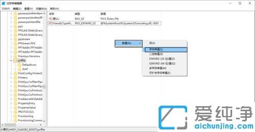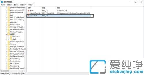 第六步:返回到HKEY_CLASSES_ROOT,在其下找到并打开“linkfile”字符串值项。重复第四步的操作,在右侧右击它,选择【新建】-【字符串值】。将名称改为【IsShortcut】后其它不用填。
