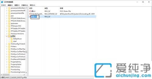 第三步:在注册表编辑器界面下,依次点击展开HKEY_CLASSES_ROOT---“piffile”字符串值项。然后鼠标点击打开。