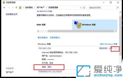 第五步:以上设置完毕,保存好网络凭据,再次访问共享时就不需要凭据了。当然也可以根据需要修改,删除凭据。