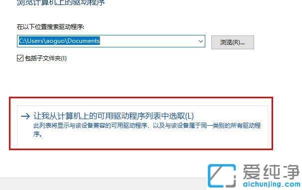 第五步:接着点击下方的【让我从计算机上的可用驱动程序列表中选取】。