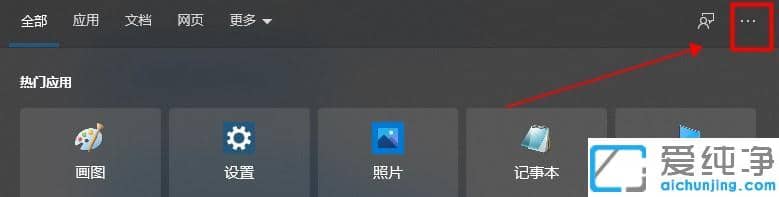 第一步:我们打开左下角win搜索框,选择右上角【三点】标志。