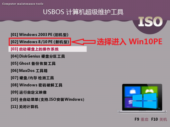 3.重新电脑,进入U盘Win10PE环境(根据自己的启动热键进PE):