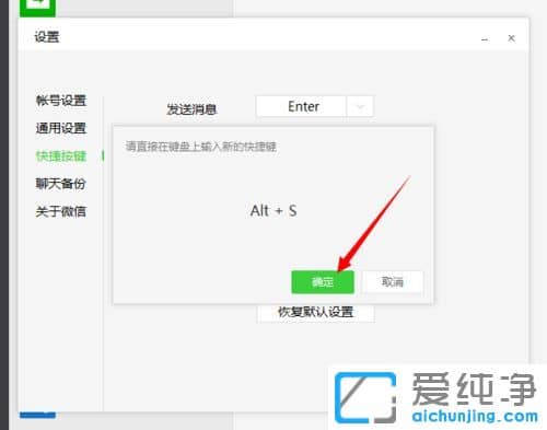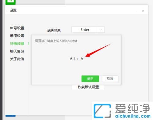 第五步:出现输入快捷键对话框,在键盘上直接按你想使用的快捷键就可以;