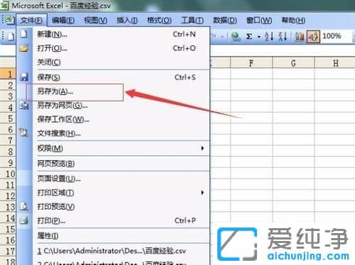 第三步:就会弹出一个下拉的菜单中进行选择为“另存为”;